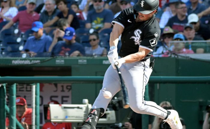 WASHINGTON, DC – SEPTEMBER 28: Chicago White Sox right fielder Dominic Fletcher (5) bats during the game between the Chicago White Sox and the Washington Nationals on September 28, …
