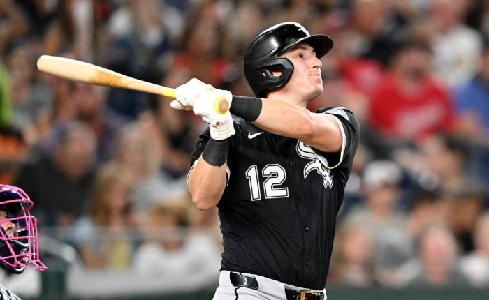 WASHINGTON, DC – SEPTEMBER 26: Colson Montgomery #12 of the Chicago White Sox hits the game winning two-run home run in the ninth inning against the Washington Nationals at …