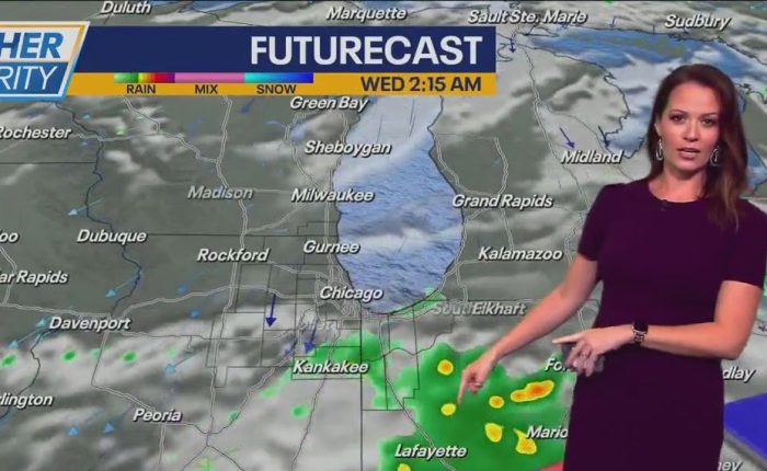 CHICAGO – Another round of scattered showers and a few storms is possible tonight, especially near and south of I-80.