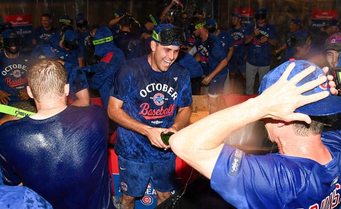 In the middle of a darkened visitors clubhouse at PNC Park, the Chicago Cubs embraced each other. Champagne …